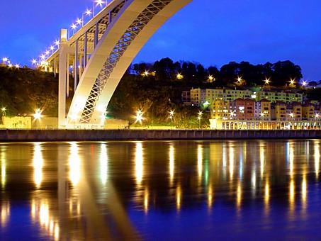 Foto do rio Douro à noite junto à Ponte da Arrábida.