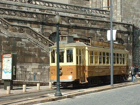 Foto do eléctrico tirada junto à Igreja de S. Francisco