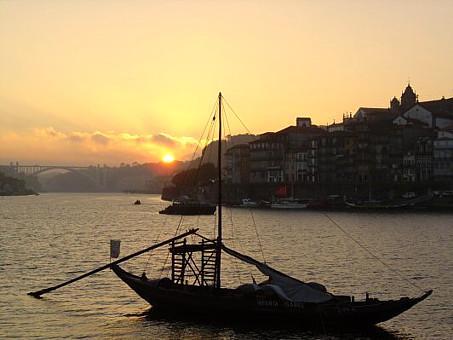 Barco Rabelo repousa nas águas do Douro ao fim de mais um dia