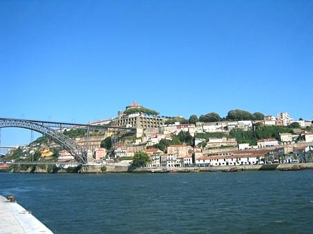 Foto tirada da Ribeira onde se pode ver do lado esquerdo a ponte D. Luiz I e a marginal de Gaia