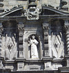 Lateralmente deparamos com um friso adornado de modilhões com uma coluna salomónica de cada lado, pousadas em pedestais e acompanhadas por colunas torcidas em espiral.
