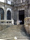 Chegados ao portal, em estilo jesuítico dos séculos XVII - XVIII, que permite a entrada para o templo podemo-nos regalar a beleza das colunas salomónicas com capiteis coríntios, acompanhados de pirâmides que o ladeiam.