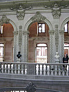 O vestíbulo da fachada principal dá acesso ao Pátio das Nações, este átrio é ladeado por um claustro envidraçado, coberto por uma grande clarabóia sustentada numa admirável estrutura metálica.